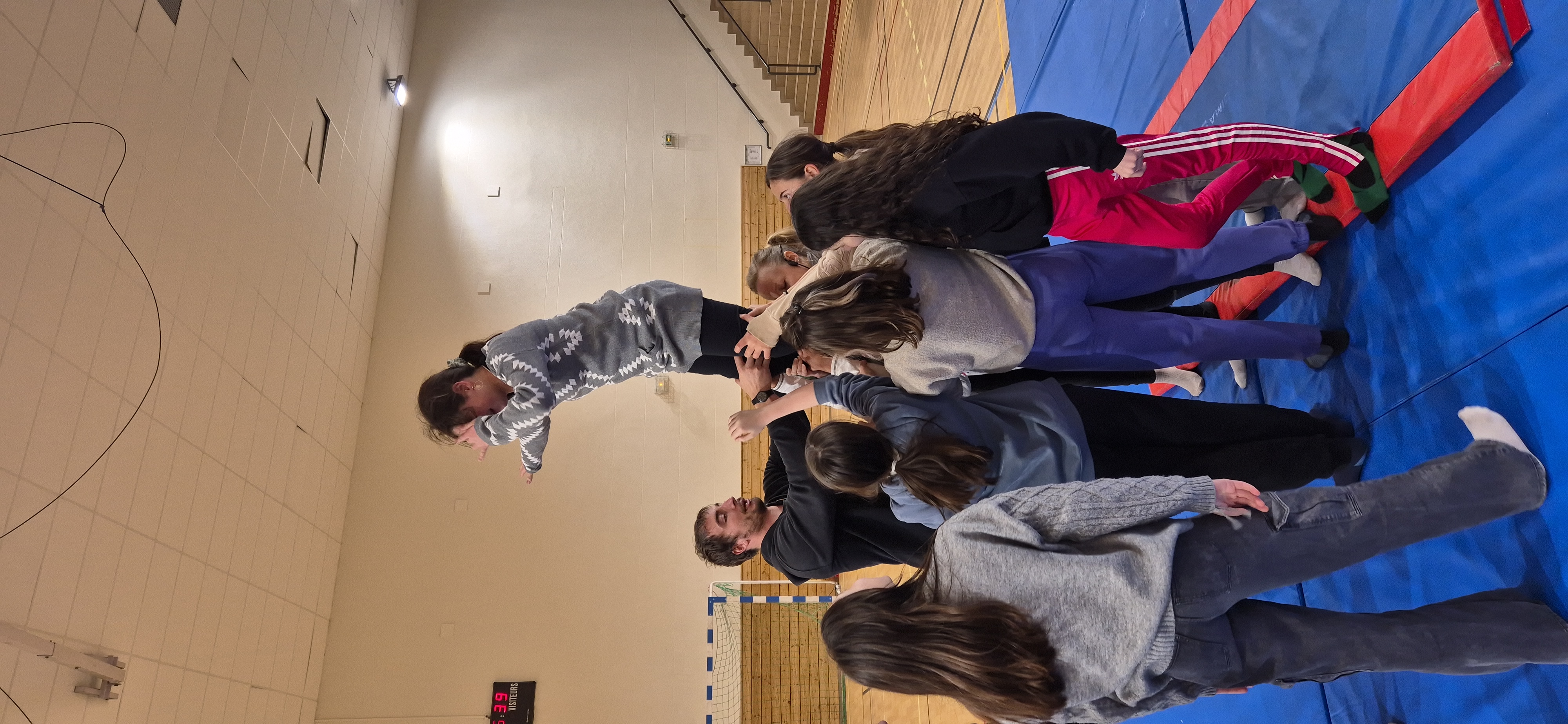 La troupe du cirque « La compagnie En Corps en l’air » est venue jouer son spectacle au gymnase du collège Jean Jaurès Lundi 20 janvier 2025. Les classes de 6è1, 6è2, 6è3, 4è2 et 3è2 ainsi que les élèves des classes ULIS et UPE2A ont eu la chance de voir le spectacle puis d’échanger avec les artistes.